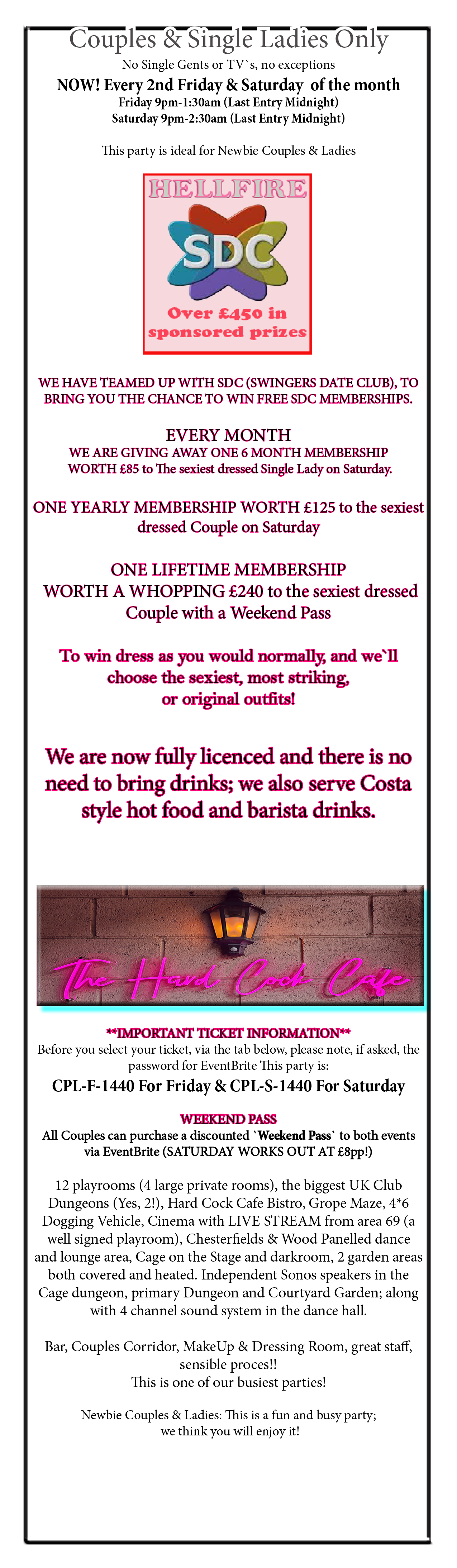 Now the 2nd Friday & Saturday of each month. This very busy, so do book early!
